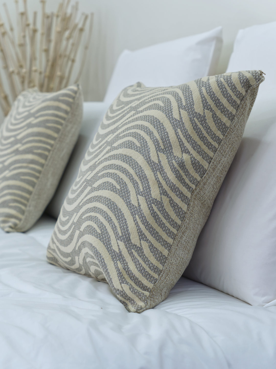 Capa de Almofada Decorativa Creme e Cinza com Padrão Ondulado | 45×45 cm