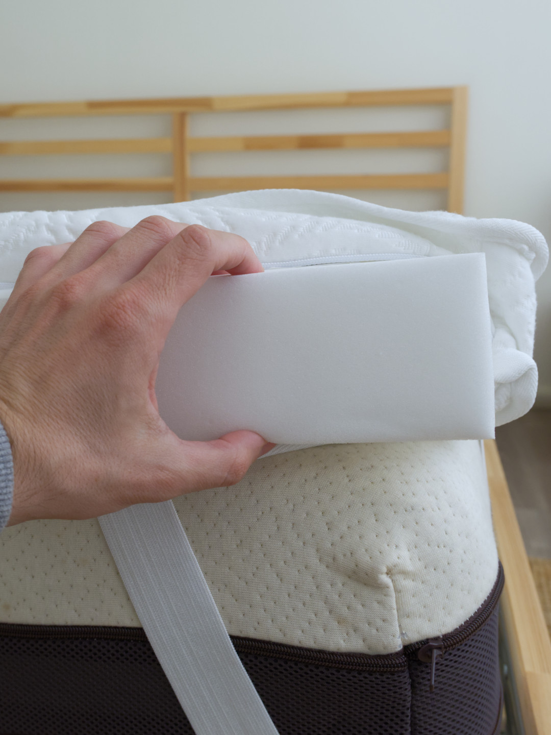 O topper inclui capa removível com fecho, permitindo lavar apenas o exterior, sem danificar o núcleo. Ideal para manter o topper limpo, fresco e livre de ácaros.